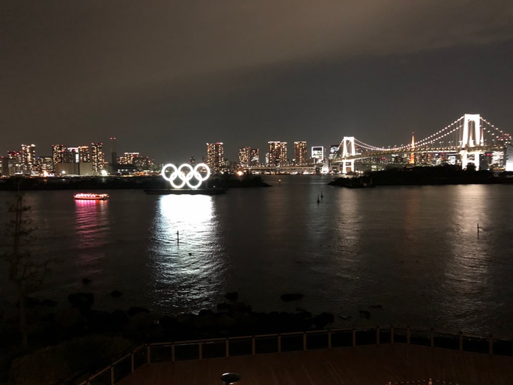 オリンピックマークに、カラの屋形船。